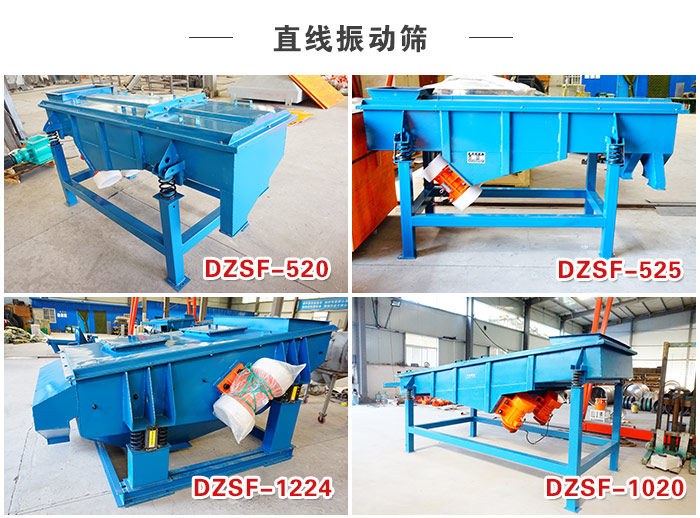 大漢機(jī)械生產(chǎn)的直線振動(dòng)篩型號(hào)有多種(如:DZSF-520、DZSF-525、DZSF-1020、DZSF-1224、DZSF-1030、DZSF-1040等),每小時(shí)篩分可達(dá)500kg-3000kg之間,足夠滿足您的大產(chǎn)量需求!