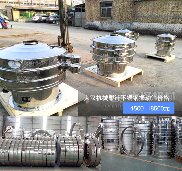 除了以上兩種篩分優(yōu)勢以外,大漢機械所生產(chǎn)的梨汁過濾不銹鋼振動篩的價格優(yōu)勢,具體如下:
