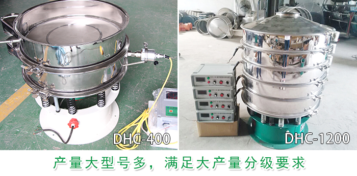 超聲波振動(dòng)篩型號(hào)分為八種標(biāo)準(zhǔn)機(jī)型(DHC-400、DHC-600、DHC-800、DHC-1000、DHC-1200、DHC-1500、DHC-1800、DHC-2000)可安裝3層篩網(wǎng),可滿足客戶不同的篩分產(chǎn)量。產(chǎn)量是普通振動(dòng)篩的2-10倍。