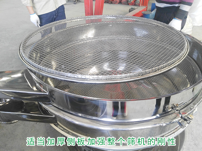 解決方法:可以適當(dāng)加厚側(cè)板,或者對振動(dòng)電機(jī)附近的側(cè)板增加附板以加強(qiáng)整個(gè)篩機(jī)的剛性。