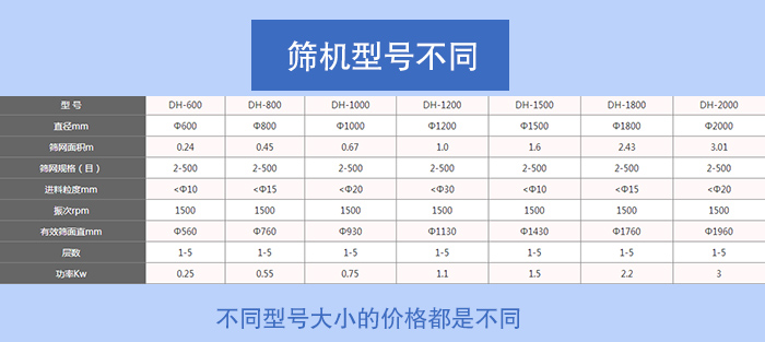菜籽不銹鋼振動篩不同型號大小的價格都是不同的,常用的型號有DH-400、DH-600、DH-800、DH-1000、DH-1200、DH-1500、DH-1800、DH-2000等八種標準型號。一般來說型號和振動電機是相互關聯的,型號越大振動電機的功率就越大,在一定時間內能夠篩出的菜籽篩分產量就越多,相應的價格就越貴。