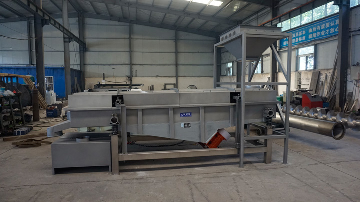 分離鋸末和石子專用振動篩通過振動篩網實現工作。當設備啟動時,振動電機產生水平振動力,使篩體產生直線運動。原料混合物被投入篩體,受振動力的作用下,原料在篩網上進行篩分,鋸末和石子根據大小和重量的不同通過篩網分離。石子等較大顆粒沿篩面快速運動,直接通過篩孔落入下方的出料口,而鋸末等較小顆粒則受到篩網的阻擋,無法通過篩孔,最終從另一出料口排出。這樣,鋸末和石子等不同顆粒尺寸的材料被有效分離,實現了精準的分級和篩分操作。