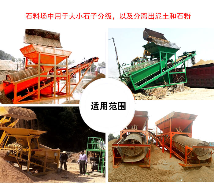 滾筒篩土同時對物料的適應(yīng)能力強(qiáng),粘性、濕度大、臟、雜等各種性質(zhì)的物料都能篩分。石料場中用于大小石子分級,以及分離出泥土和石粉?;みx礦行業(yè)用于大小塊狀物分級及分離粉狀物質(zhì)。