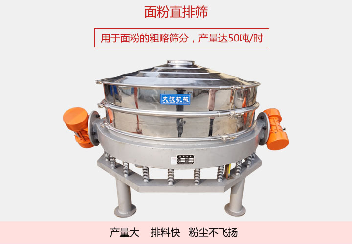 面粉直排篩 又稱面粉振動篩,面粉直排篩因為出料口在下方,排料比較方便而且容易于其它工序連接。面粉直線篩采用304不銹鋼材質而成。