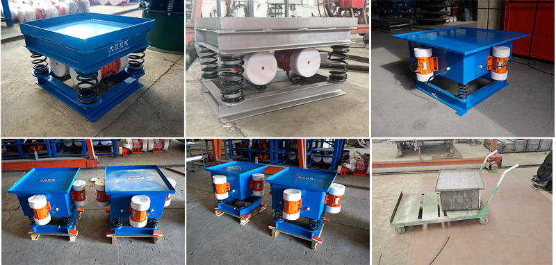 振動平臺于生產(chǎn)流程中用于把顆粒、粉狀物料從散裝到塊狀、形狀等形式的轉變,主要用于物料的震實,減少物料內(nèi)的空氣和縫隙,一般和料倉配套使用,在翻砂鑄造行業(yè)、人防門的填充方面以及物料灌裝方面用的一直很廣泛。