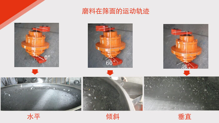 磨料振動篩是一種高精度細粉篩分機械,工作原理是由直立式電機作激振源,電機上、下兩端安裝有偏心重錘,將電機的旋轉(zhuǎn)運動轉(zhuǎn)變?yōu)樗?、垂直、傾斜的三次元運動,再把這個運動傳遞給篩面。調(diào)節(jié)上、下兩端的相位角,可以改變物料在篩面上的運動軌跡,由于其振動運轉(zhuǎn)原理很多企業(yè)也稱之為“三次元振動篩分過濾機”,根據(jù)外形結(jié)構(gòu)被部分客戶稱呼為圓形篩,從材質(zhì)上分標(biāo)準型旋振篩和普通型旋振篩的,標(biāo)準型的與物料接觸部分為304不銹鋼材質(zhì),底座為碳鋼材質(zhì),普通型的通體為普碳鋼材質(zhì)。