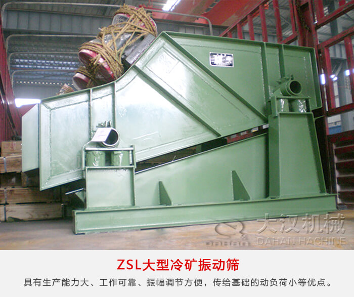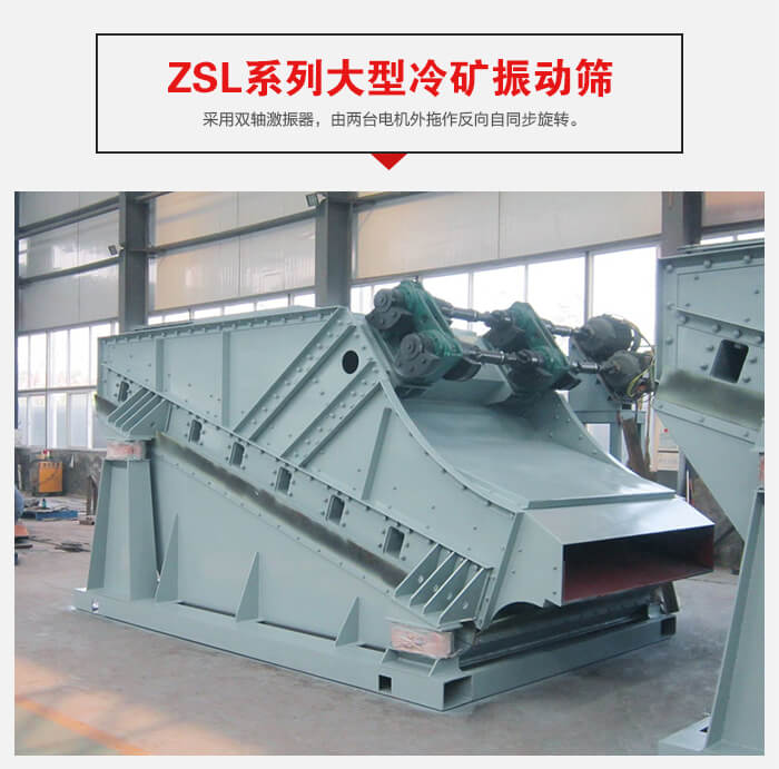 ZSL系列大型采用雙軸激振器,電機(jī)不參振,由兩臺電機(jī)外拖作反向自同步旋轉(zhuǎn),使篩箱產(chǎn)生較大振幅沿直線方向作周期性往復(fù)運(yùn)動,從而達(dá)到篩分目的的一種振動篩設(shè)備。這種振動篩具有生產(chǎn)能力大、工作可靠、振幅調(diào)節(jié)方便、傳給基礎(chǔ)的動負(fù)荷小等優(yōu)點(diǎn)。