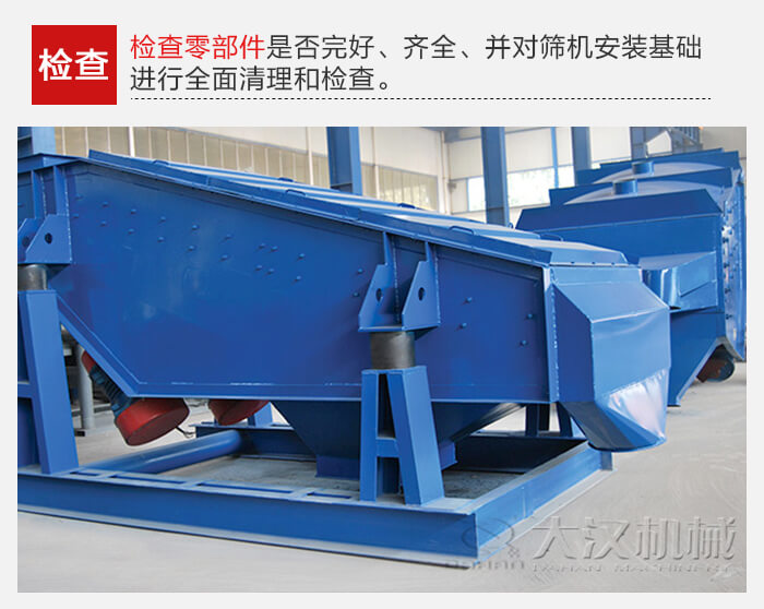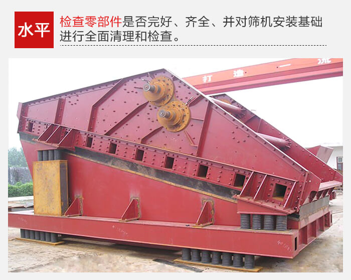 要檢查零部件是否完好、齊全、并對篩機(jī)安裝基礎(chǔ)進(jìn)行全面清理和檢查。