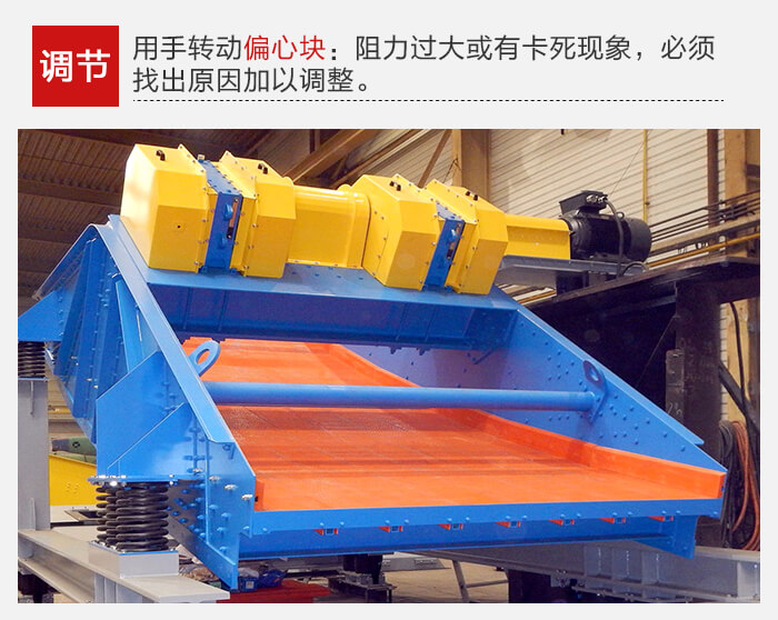 振動器裝配完畢后,用手轉(zhuǎn)動偏心塊,如阻力過大或有卡死現(xiàn)象,必須找出原因加以調(diào)整。