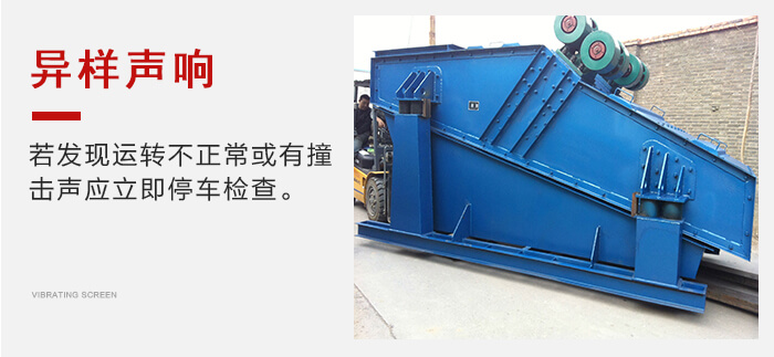 在冷礦振動篩工作過程中,應(yīng)經(jīng)常觀察篩子運(yùn)動是否平穩(wěn),若發(fā)現(xiàn)運(yùn)轉(zhuǎn)不正?;蛴凶矒袈晳?yīng)立即停車檢查。