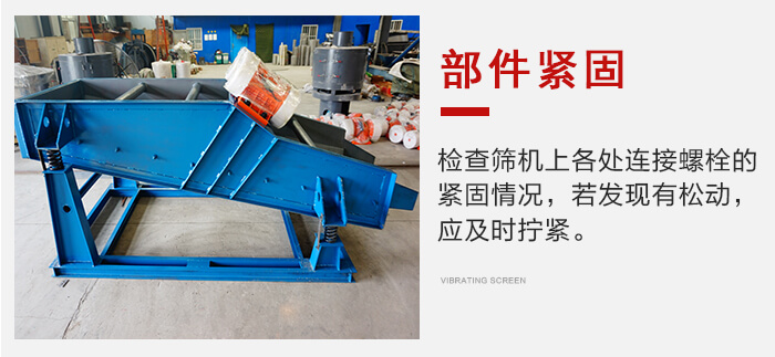 應(yīng)經(jīng)常檢查篩機(jī)上各處連接螺栓的緊固情況,若發(fā)現(xiàn)有松動,應(yīng)及時擰緊。